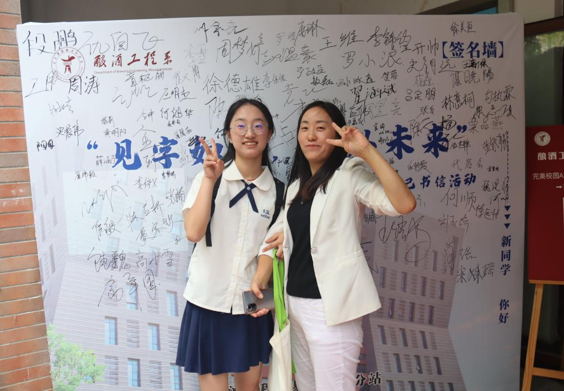 “见字如面,共赴未来”--写给未来的自己书信活动吸引了新同学们的踊跃参与。一张张写着新生寄语的便利贴渐渐贴满展板,签名墙前满心笑容与家长留下的合影,承载着新同学们对即将开启的大学生活的满心期盼与向往。