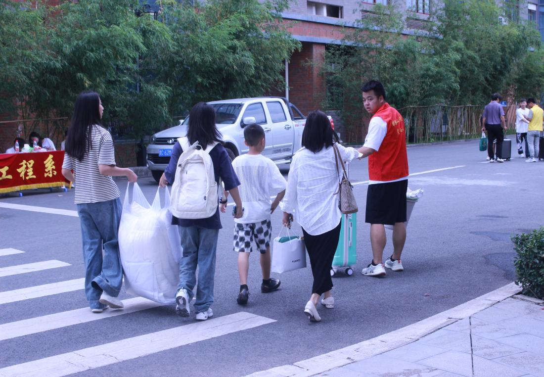 阳光刚洒进校园,我系迎新工作便进行地如火如荼,校园内到处都是忙碌的身影。我系报道现场设立专职小组,明确报到流程,安排专人引导和帮助新同学报道注册、搬运行李、入住寝室、熟悉校园等,并为新同学赠送入学礼品,用最真切的关怀表达对新同学最热烈的欢迎。