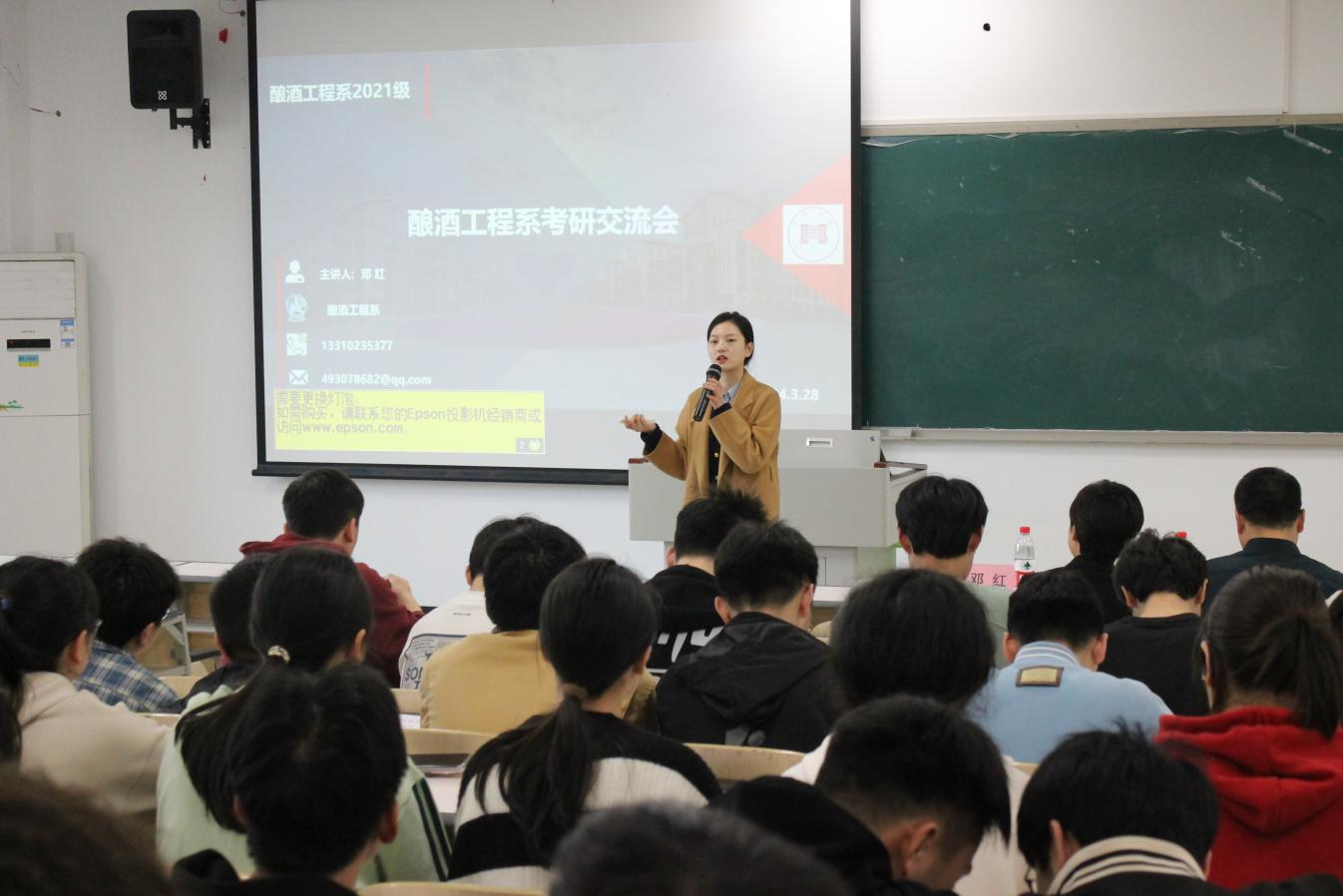 为充分调学生的考研积极性,帮助学生了解考研形势,明确考研目标,增强考研信心,3月28日,酿酒工程系组织召开2025届毕业生考研动员大会。会议由酿酒工程系团总支书记吕享主持,酿酒工程系党总支副书记刘晓晓、副主任郑华艳、教师代表及2025届全体同学参加本次会议。