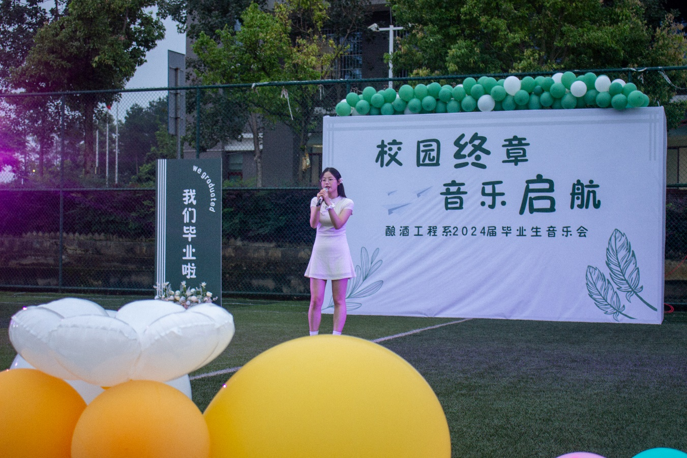 为欢送2024届毕业生,表达对毕业生的美好祝愿。2024年6月18日,酿酒工程系在风雨操场举办以“校园终章,音乐启航”为主题的毕业生音乐晚会。我系党总支副书记刘晓晓、副主任吴德光、全体辅导员、2024届全体毕业生及学生代表共同参加本次晚会。