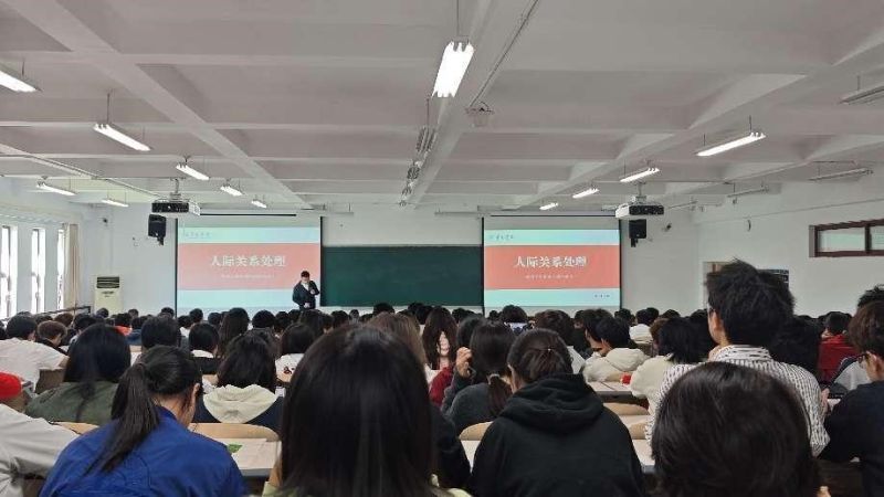 在人际交往过程中,还需提高警惕,以“2024,茅院无诈”为目标,谨防各类诈骗。谈到个人发展时,吕老师强调作为新时代青年,应该具备良好的沟通能力,良好的沟通能力不仅是学业成功的关键,更是未来职场竞争的必备技能。鼓励同学们要学会独立思考,掌握信息检索技巧,锻炼自学能力,为考研和未来就业打下坚实基础。