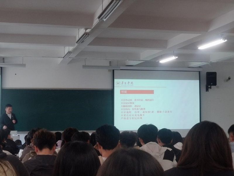 班会上明确了学生行为的界限,吕享老师列举了校纪校规中的一些基本要求,如不夜不归宿、不酗酒、不参与赌博等,他希望同学们能够严于律己,维护良好的校园秩序。