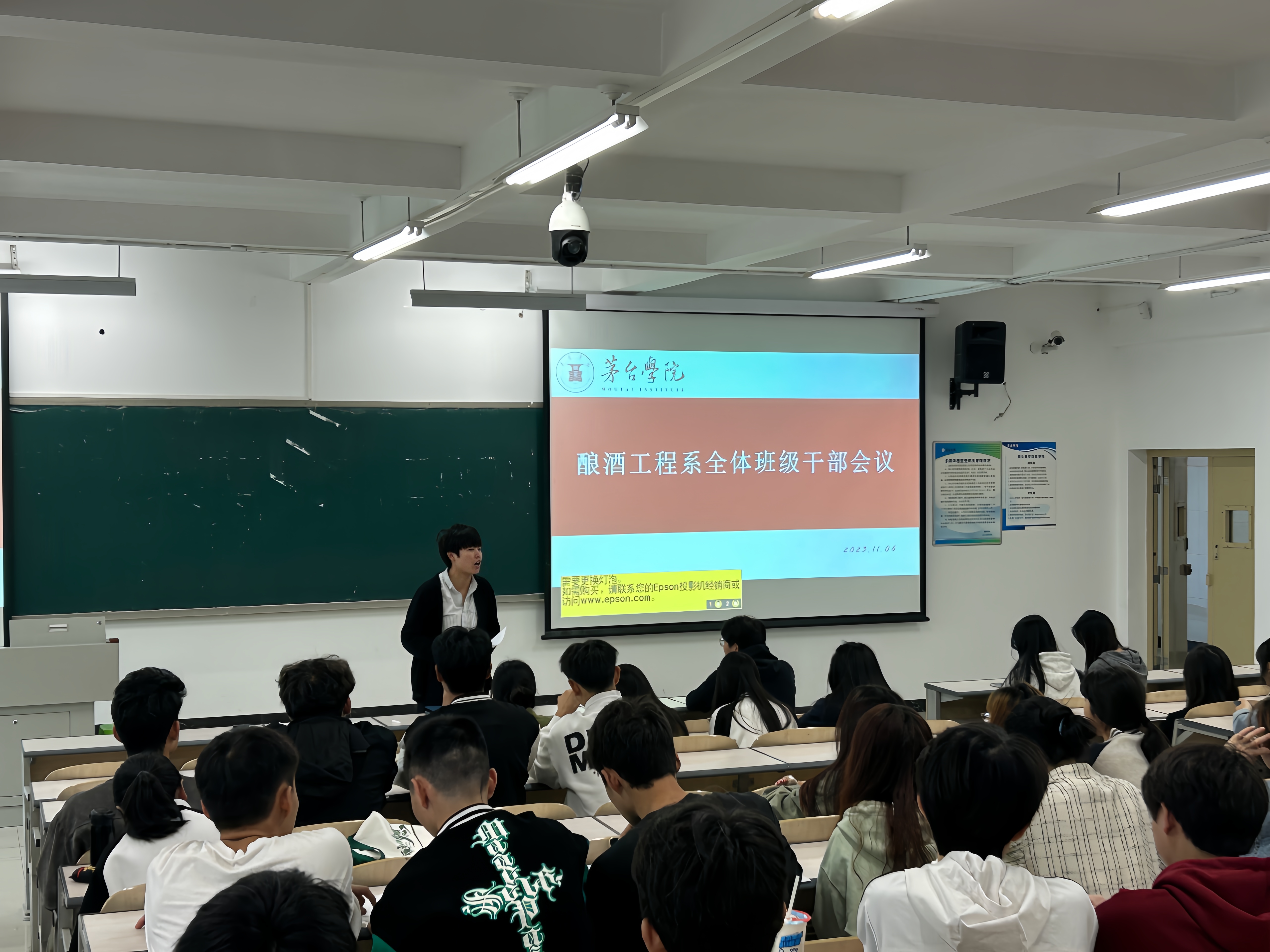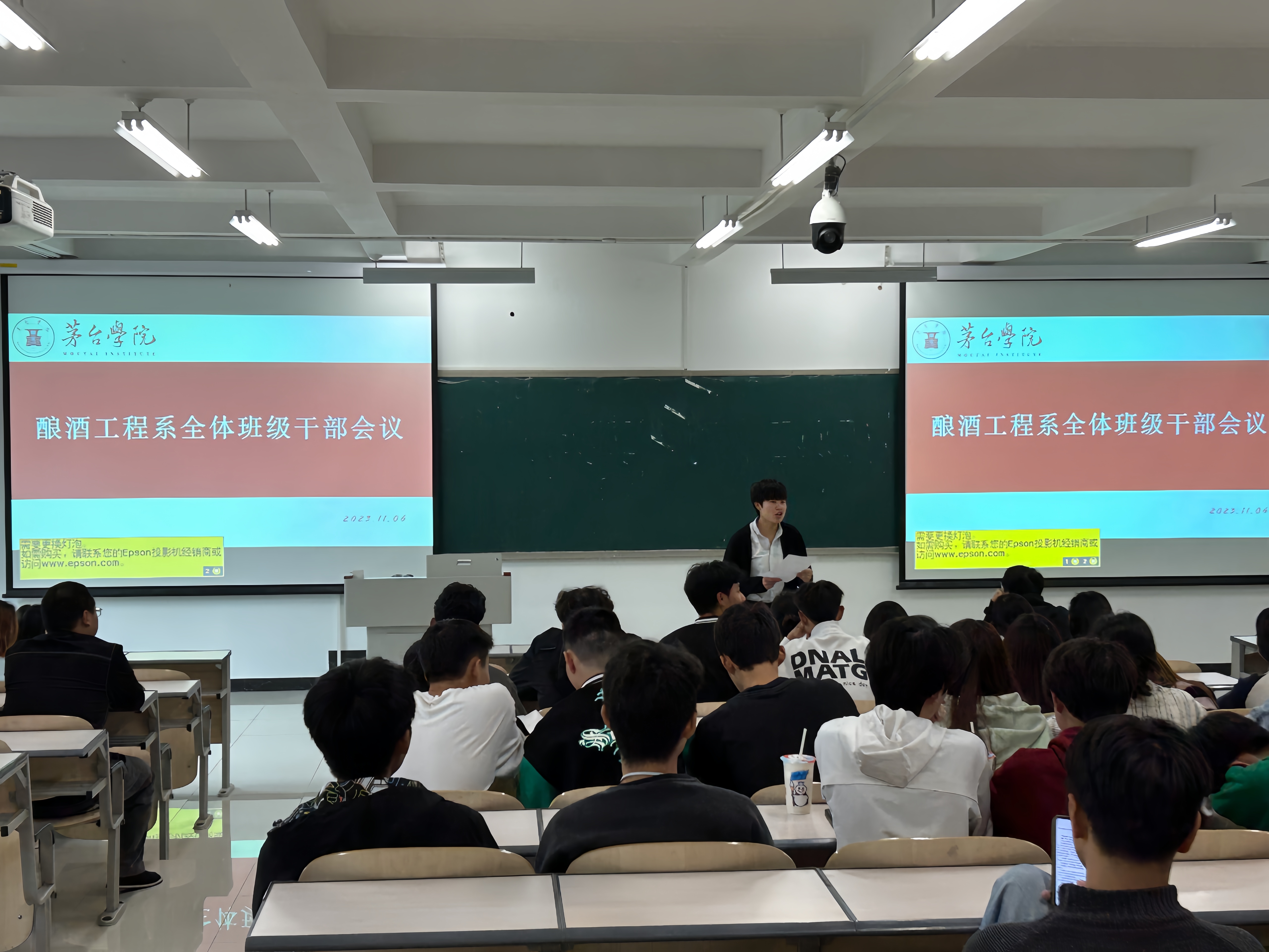 为全力以赴迎接本科教学合格评估,加强学生日常规范管理,引导学生养成良好行为习惯,强化校风校纪,营造我系优良学风,2023年11月6日,酿酒工程系组织召开全体学生干部会议。会议由酿酒工程系老师黄颖主持,酿酒工程系党总支副书记刘晓晓出席,各班班干代表参会。