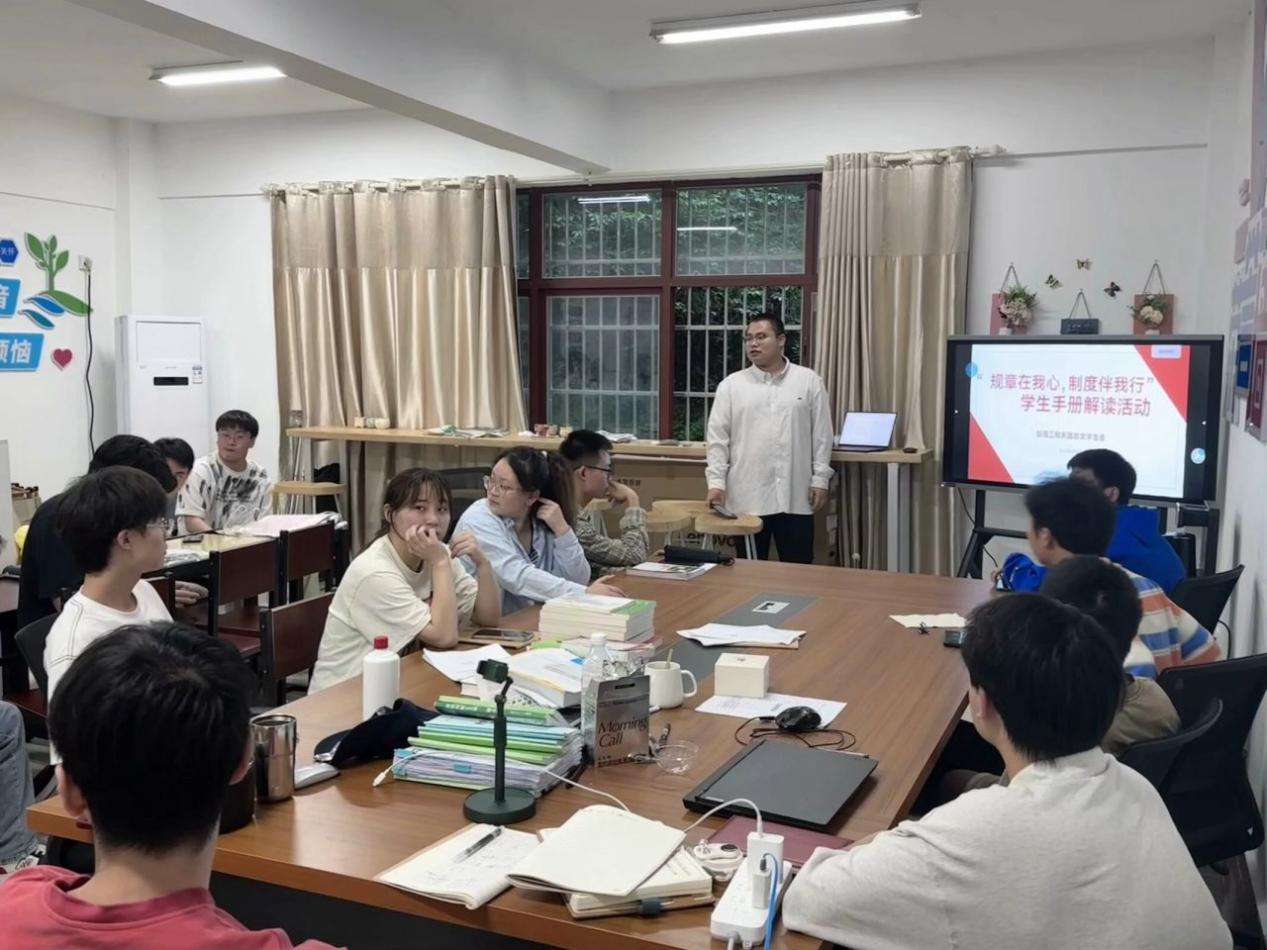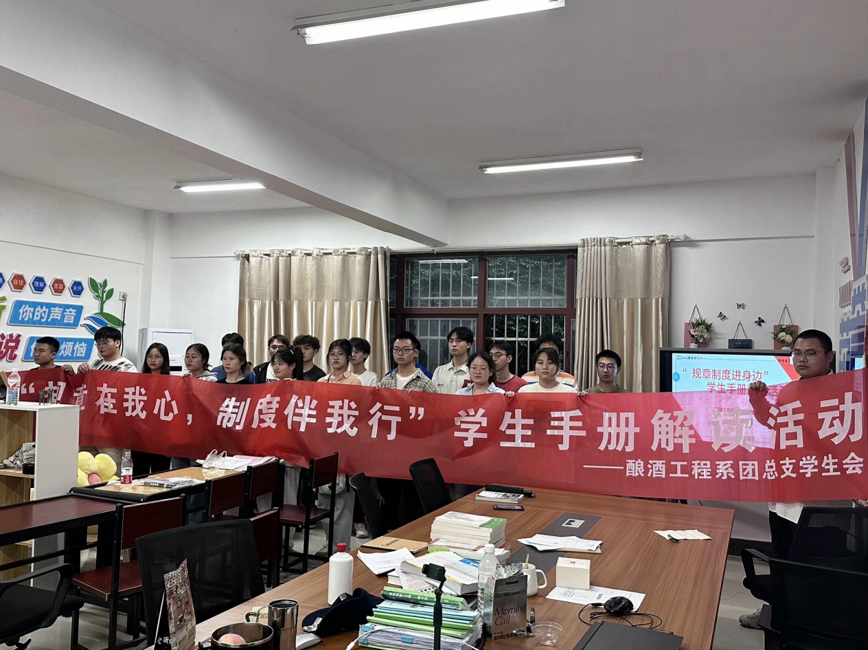 为进一步引导学生树立正确的考试观念,严肃考风考纪,加强诚信教育,明确考试管理规范,提高学生的道德素质和自律意识,培养学生诚信应考观念,引导学生严格遵循考试规章制度,树立良好的考风。2024年6月4日,酿酒工程系于“一站式”学生社区开展了期末考前学生手册宣讲活动,学习部侯轩畅同学主讲,各班级学生代表参加。