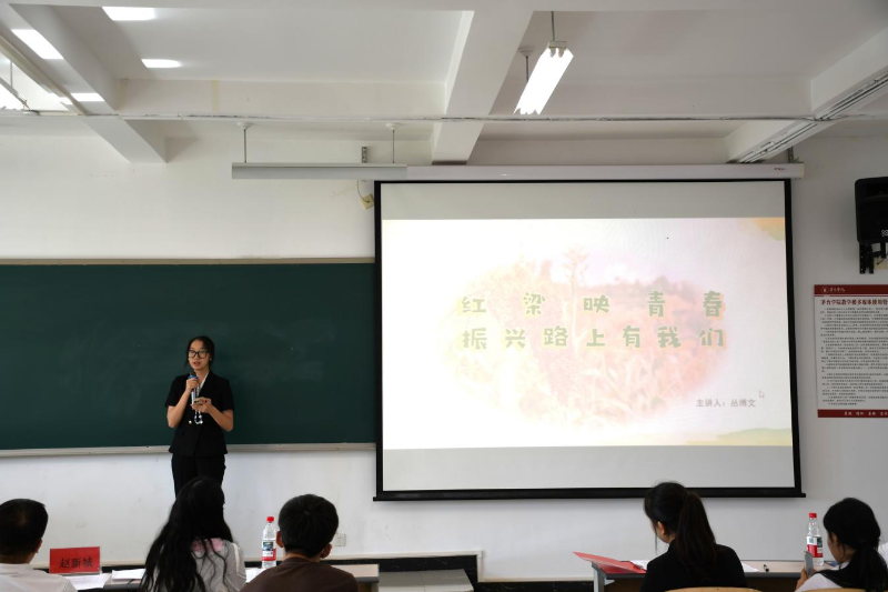 为深入学习贯彻习近平新时代中国特色社会主义思想,引导团员青年投身思想政治理论宣讲,唱响主旋律、弘扬正能量,激励广大青年学子立志做有理想、敢担当、能吃苦、肯奋斗的新时代好青年。近日,酿酒工程学院在报国楼举行了以“青春奋进新时代,强国有我新征程”为主题的微团课竞赛。酿酒工程学院党总支副书记吴鹏西老师,学生工作办公室主办赵新城老师、团总支书记郭蓉老师,王肖老师,王惠颖老师参加活动。