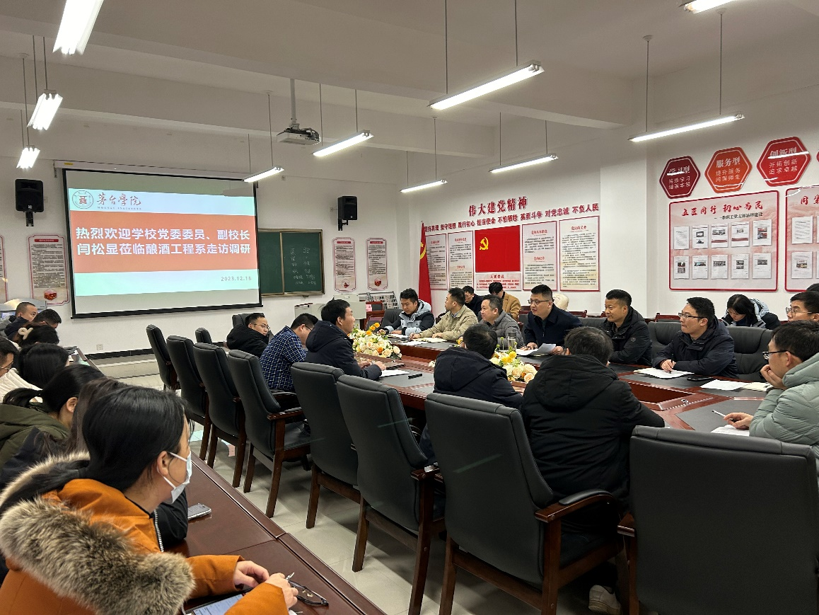 为进一步加强教学质量监控工作,切实提高教师科研水平及后勤服务水平,2023年12月18日,学校党委委员、副校长闫松显到酿酒工程系走访调研,后勤管理处处长钟音亮、科研处相关教师陪同调研,酿酒工程系全体教职工参加。