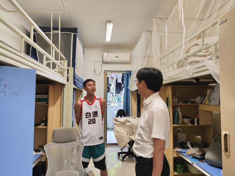为落实2025年暑假期间校园安全工作相关要求,确保假期校园稳定、师生安全。7月11日,学校党委委员、副校长张春林到酿酒工程学院开展暑假前安全检查工作,他深入学院办公室、学生宿舍等地,与师生面对面交流,告知时刻要绷紧安全之弦,度过平安暑假。