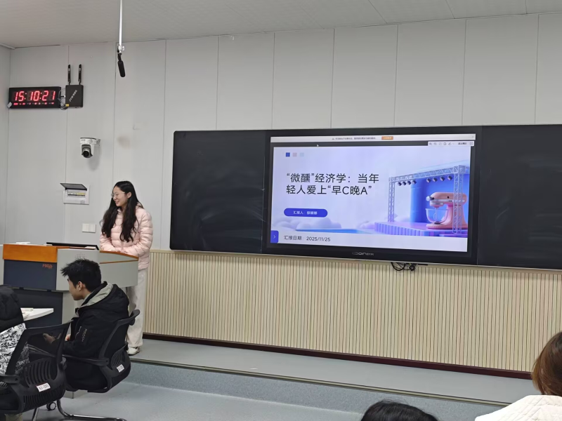1.主题分享:学生们通过PPT形式,紧扣时政热点(如近半年科技突破、民生政策)与专业学习(如白酒产业与AI技术融合),生动诠释时代关键词的深层逻辑;