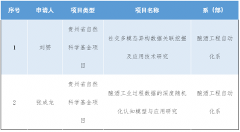 喜报:茅台学院酿酒工程自动化系2022年获2项贵州省自然科学基金项目立项