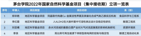 喜报:茅台学院酿酒工程自动化系2022年获1项国家自然科学基金立项
