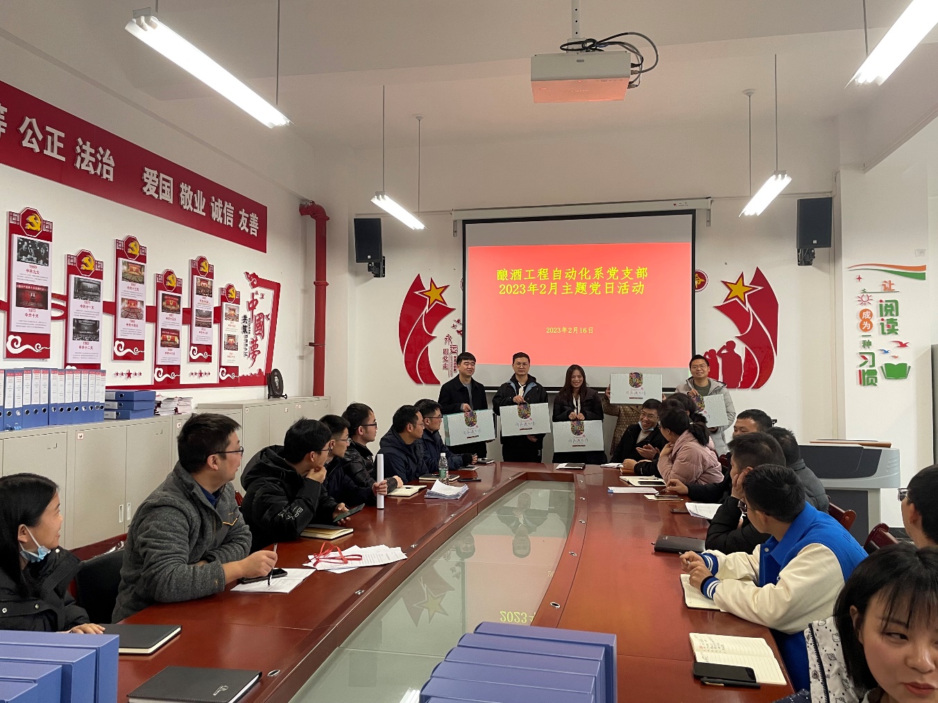 酿酒工程自动化系于2023年2月16日举办了“新学期、新气象,奋斗新征程”新学期慰问活动。本次活动,以“人性化”为主线,以放松心情、增进感情、鼓舞士气、营造团结和谐的精神氛围为宗旨,通过座谈慰问方式,让大家在轻松活跃的氛围中增进感情、共话系部发展。