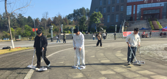 参与人员分工协作、细致尽责,对校园进行全方位清扫,连草丛中的零散落叶都逐一清理。经过共同努力,被落叶覆盖的路面与草坪恢复整洁,阳光映照下的校园更显清爽活力。