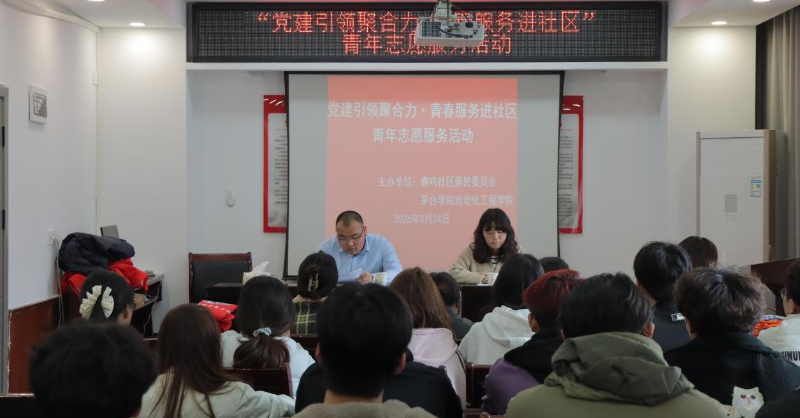 为弘扬雷锋精神,深入推进“党建带团建、实践育新人”工作,3月24日,咫尺匠心辅导员工作室、自动化工程学院青年志愿服务队联合仁怀市中枢街道鹿鸣社区新时代文明实践站,开展“党建引领聚合力 青春服务进社区”青年志愿服务活动。
