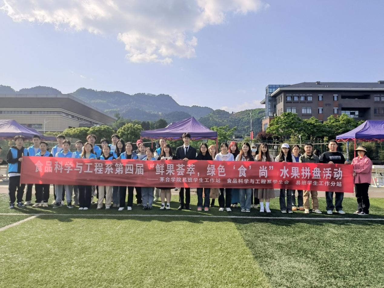 为了提高同学们的创新能力和动手能力,丰富同学们的课外生活,培养健康营养的饮食理念,2023年4月25日,茅台学院食品科学与工程系于风雨操场组织开展“鲜果荟萃,绿色‘食’尚”第四届水果拼盘活动。活动邀请系党总支副书记刘秋老师到场指导,各系学生会主席团成员担任评委。