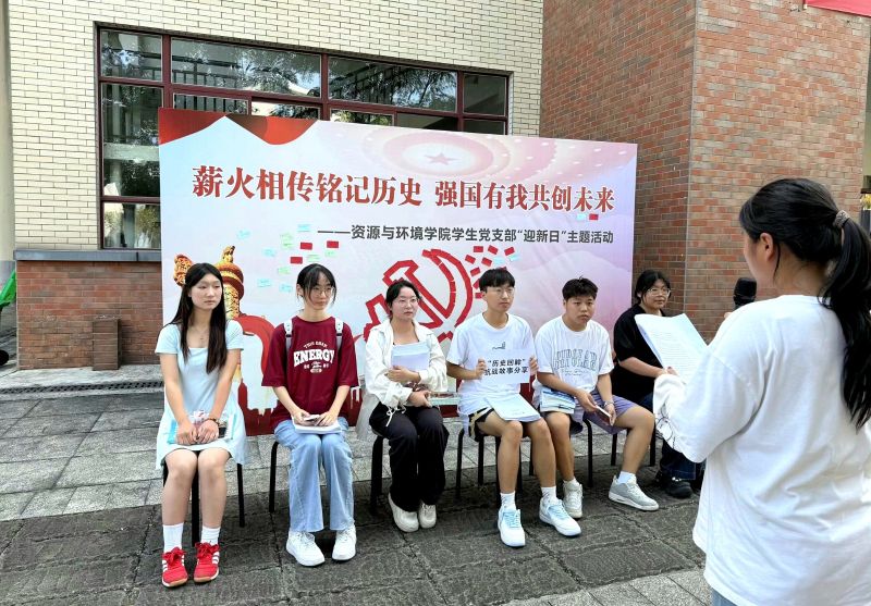 红旗飘飘,光辉闪耀。为纪念中国人民抗日战争暨世界反法西斯战争胜利80周年,引导青年学子铭记光辉历史,激发历史自觉与使命担当,筑牢理想信念根基,推动新生入学教育开好局、起好步,全面增强支部凝聚力和向心力,恰逢新生入学之际,9月3日至9月4日,资源与环境学院学生党支部组织开展“薪火相传铭记历史 强国有我共创未来”迎新日主题党日活动。