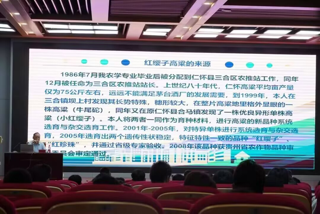 为增强师生专业认知,提升专业学习兴趣,2023年9月12日,资源环境系第五期酒都生态论坛邀请到贵州茅台酒厂(集团)首席育种专家、茅台学院产业导师涂佑能,作了题为“酱酒之源:红缨子高粱”的学术讲座,资环系党总支书记、主任冯华仲主持,资环系师生代表、种子科学与工程专业全体师生参加。