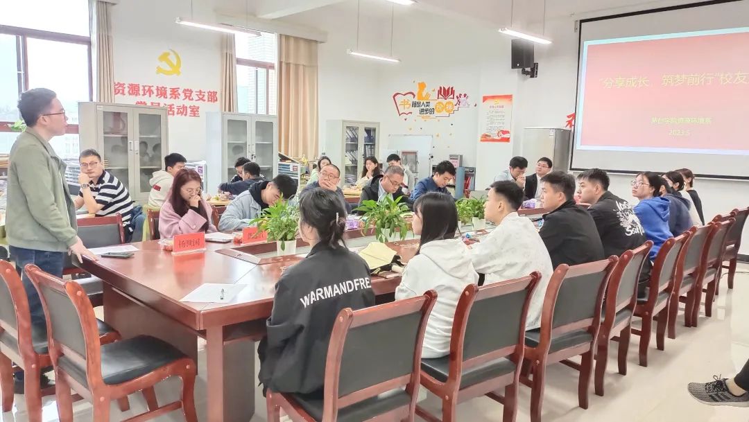 为进一步推进资源环境系学风建设,充分发挥优秀毕业生引领作用,帮助同学们科学规划职业生涯,激励同学们奋发学习。5月11日,资源环境系举办了“分享成长,筑梦前行”校友交流会。资源环境系党总支书记、主任冯华仲老师,副主任高宇老师,党总支副书记黄华老师,柏兰峰、栾康老师以及五位2021届、2022届的优秀毕业生代表参加此次活动。