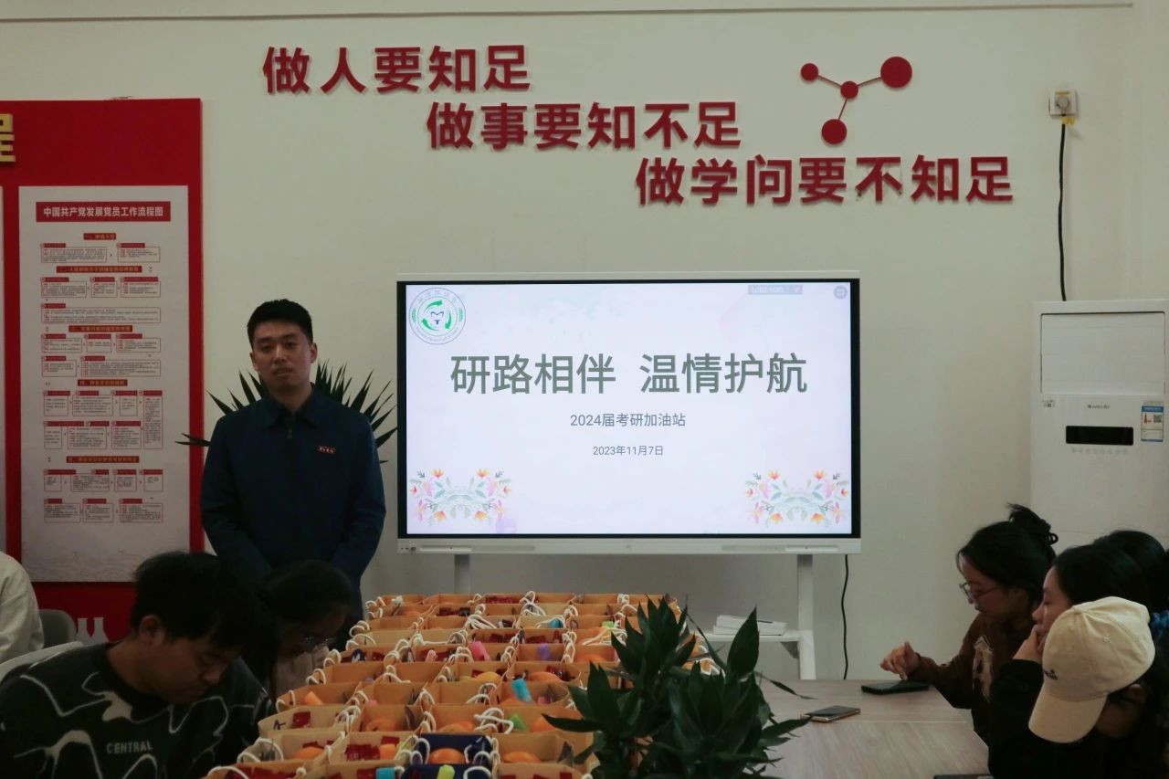 为帮助考研学子们缓解备考压力,鼓舞士气,坚定信心,资源环境系于11月7日在资源环境系一站式社区服务中心举办考研慰问活动。资源环境系党总支副书记黄华老师,资源环境系团总支书记栾康老师,资源环境系鲁镜镜老师出席活动。