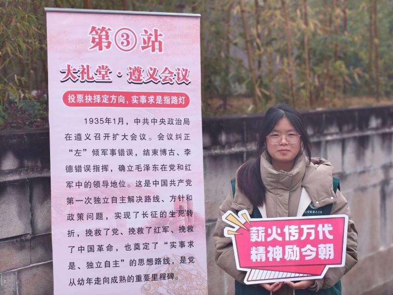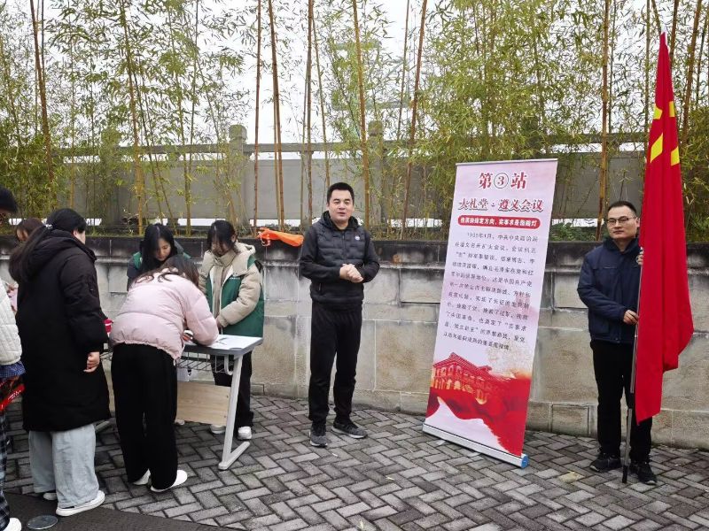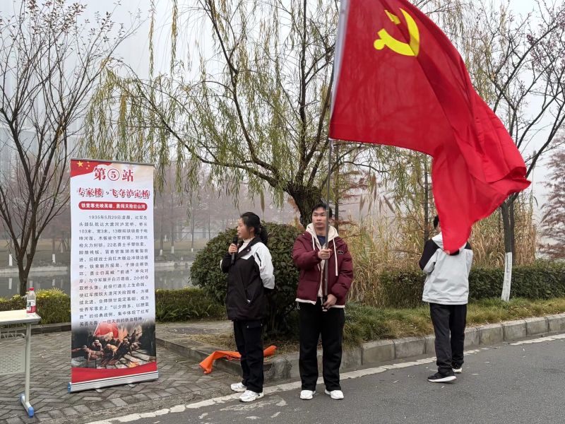 晨光奔跑:校园化作“微型长征”,路线依序铺展瑞金、乌江、遵义、赤水、泸定、会宁六站。师生一路从“瑞金”(图书馆)浩荡出发,在“强渡乌江”(初心路)写下人生誓言,在“遵义会议”(大礼堂)听转折故事,在“四渡赤水”(宿舍楼)模拟过浮桥,在“飞夺泸定桥”(专家楼)高唱红歌,最后抵达“会宁”(田径场)共话励志感悟。参与人员纷纷在每个站点集印章、留签名、说体会、表决心。脚步替理想测距,印章为坚持留痕——六枚红印连成信仰坐标,提示下一段征程:跑下去,终会迎来新的胜利。
