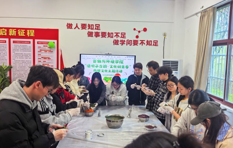 在本次活动的核心体验环节——青团DIY制作,同学们在老师的指导下,有序参与青团制作,锻炼动手实践能力的同时,又切身感受了一番清明传统美食文化的魅力。活动现场,同学们相互交流制作技巧,分享动手乐趣,在味蕾的满足中感受传统文化的温度,在劳动的快乐中体悟匠人精神的内涵,氛围十分和谐融洽。