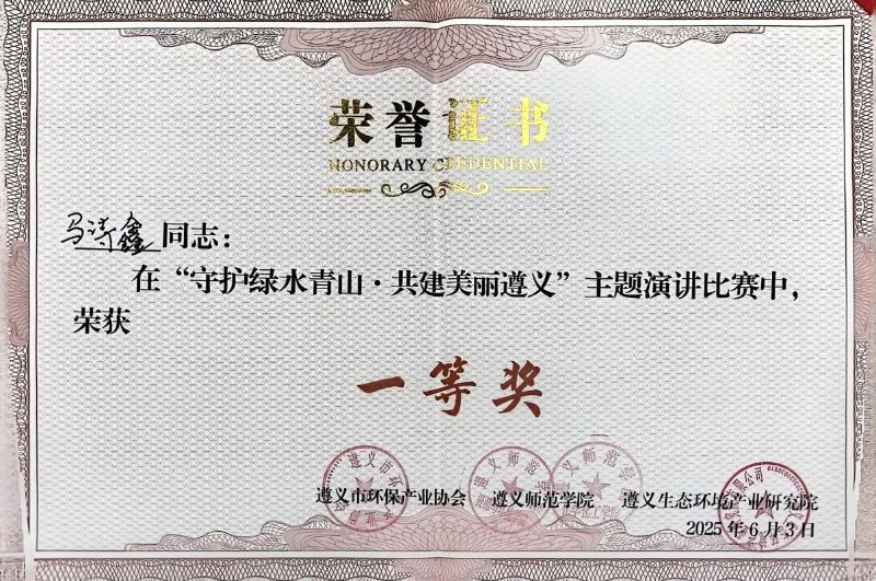6月3日,由遵义市环保产业协会主办的“守护绿水青山,共建美丽遵义”主题演讲比赛在遵义举行。我院学生马诗鑫以自身行动的经历,深情讲述赤水河生态护河故事,凭借其实践基础与富有感染力的表达,最终荣获一等奖,展现了新时代青年投身生态文明建设的责任担当。