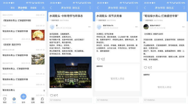 “翰墨颂双节”活动通过易班APP平台,面向全校学生征集了近百份以《水调歌头》等经典词牌为模板的原创诗词作品投稿,作品内容涵盖中秋团圆、家国情怀、专业发展及青春风采等主题,展现了茅院学子良好的文学素养与创作热情。20份线上优秀作品的作者获邀参加线下书法创作,在学生社区现场誊写作品,书法爱好者们亦纷纷挥毫泼墨,留下不少精彩佳作。