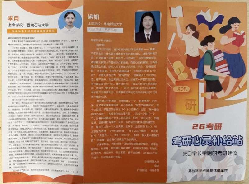 除现场慰问外,我院还同步设置了“考研补给站”,连续七天为考研学子提供物资支持,为节省宝贵时间,精准对接考研学子的压力与困惑,同学们还精心制作了《学长学姐考研建议手册》,并贴心在各考研自习教室写下鼓励话语,切实将关怀融入备考日常,温暖考研学子奋斗之路。