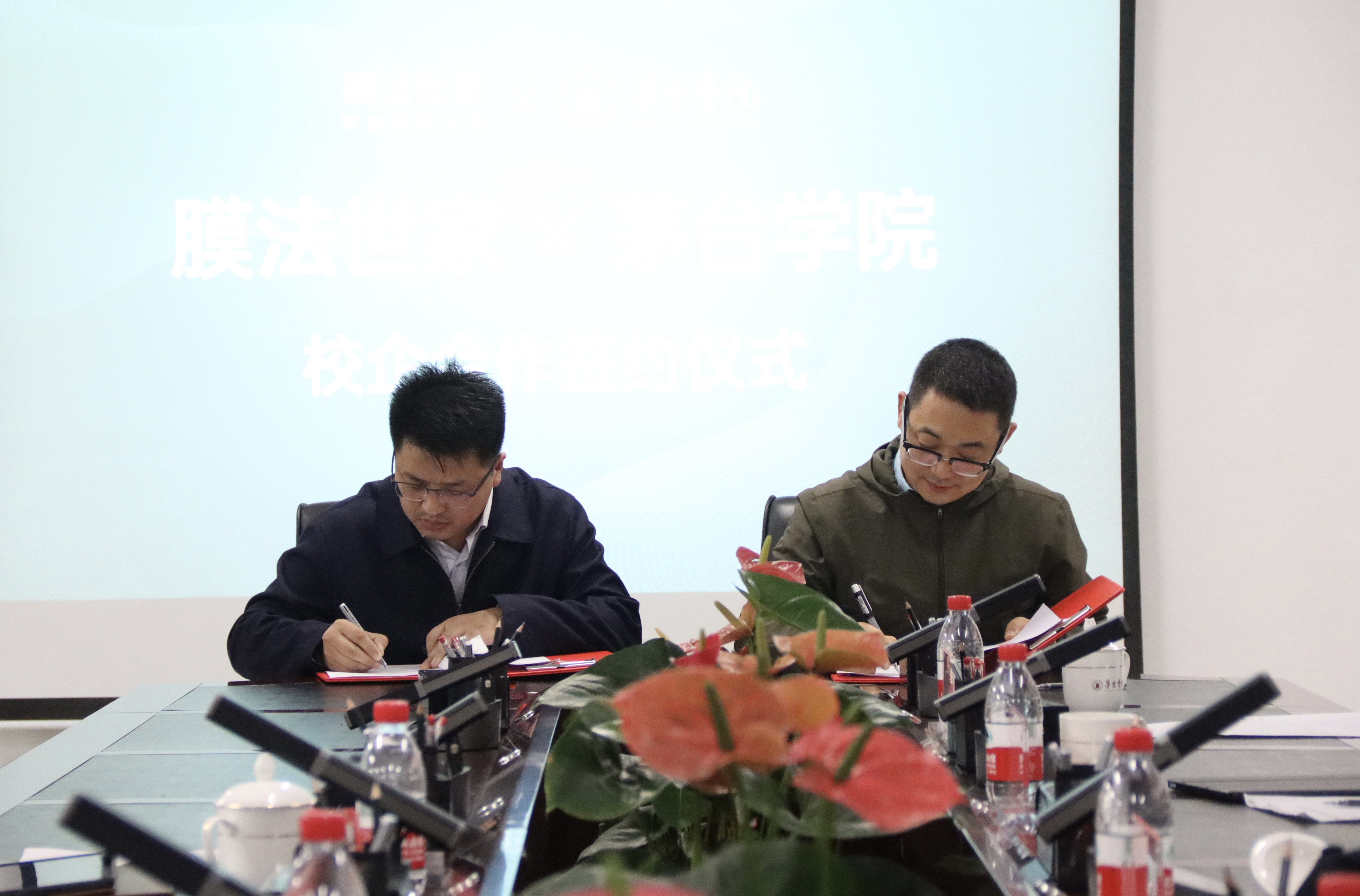 会议签订了膜法世家与茅台学院校企合作协议,并为酿酒酵母化妆品研究与应用联合实验室揭牌。