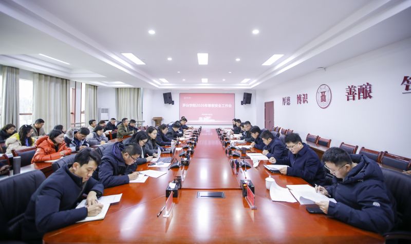 为全面做好寒假期间校园安全保障工作,1月4日,茅台学院在行政楼二楼会议室召开2026年寒假安全工作会议,系统部署各项安全任务。校长于灏洋出席会议并讲话,校领导张春林、程庆、田戊戌、周长辉、闫松显、张珊、赵正一出席会议。