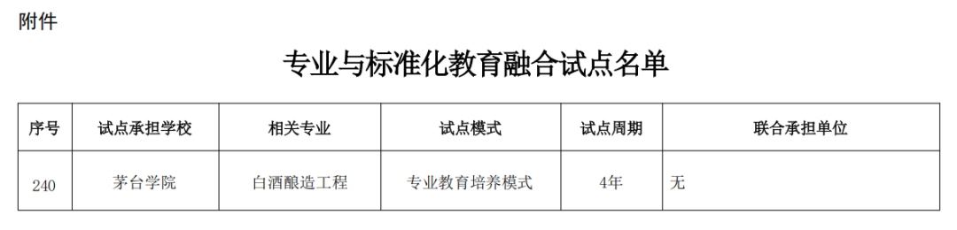 近日,国家市场监督管理总局、教育部联合印发了《关于公布专业与标准化教育融合试点名单的通知》,公布了全国首批专业与标准化教育融合试点名单,全国共281个试点项目入选,茅台学院白酒酿造工程专业跻身其中。