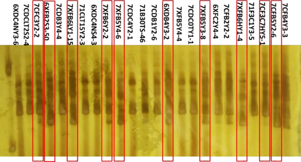 针对分离自茅台酿造环境与酿造体系的600余株酿酒酵母菌株开展IGS1的高变区(HVG-I)的高通量PCR-SSCP(单链构象多态性)分析,结果表明在茅台酒酿造过程中存在着多种核型的酿酒酵母。如图4所示茅台酒酿造过程中代表性酿酒酵母菌株就有10种核型,进一步证明了茅台酒长期酿造活动对酿酒酵母类群能够产生差异性驯化,佐证了茅台酒核心产区无法复制的科学性。